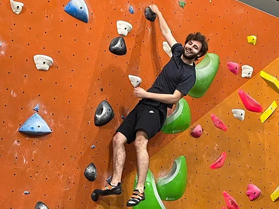 I’ve been climbing for about 4 years now, and it’s become my way to reset, refocus, and stay grounded, by being off the ground. Every wall is a new puzzle, mixing physical control and mental clarity. It’s where I recharge, think creatively, and sometimes just hang out, literally.